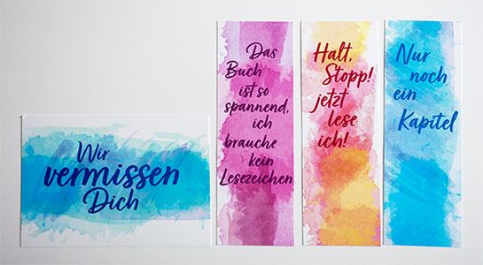 Lesezeichen und Erinnerungskarte für eine Stadtbücherei