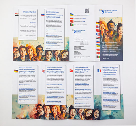 Mehrsprachiger Folder regt Menschen mit Migrationsgeschichte zum Einbringen in die Stadtgemeinschaft an.
